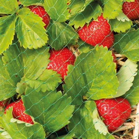 Finmaskigt nät i plast som skyddar bär och frukt mot fåglar.