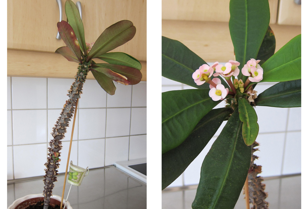 Hej! Jag har en växt som är ca 30 cm hög, den kommer från min mormor och är nog 25 år gammal. Mormor kallade den för pepparpalm, men någon sådan växt kan jag inte hitta. Den är "taggig" på stammen, har bara blad i toppen och blommar nästan alltid med ljusrosa blommor. Jag har förökat den med frön som den "skjuter" iväg när dom mognar. Vad är detta för växt?
