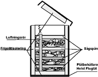 Man kan bygga en kompost själv. Jag har använt en gammal sopsäckhållare av plåt och isolerat den med 5 cm frigolitskivor. I denna har jag en plastsäck med ett perforerat dräneringsrör som ventilation. Den fungerar och håller sig varm till det blir riktigt kallt. Då fryser den men då kan man sätta i en ny säck som blir varm när kylan ger sig.