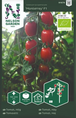 'Monterrey' F1 är ett ekologiskt frö som lämpar sig för ekologisk odling. Frukterna är smakrika, avlångt röda och brukar inte spricka. Tomaterna går bra att lagra och håller länge efter de har plockats av.