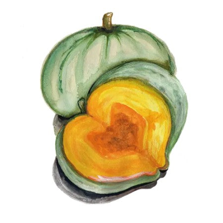 En stor och vacker vintersquash med mycket goda lagringsegenskaper. Gror bra i kall jord och frukterna ger ett krispigt och sött fruktkött som smakar supergott såväl rått som tillagat. Frökärnan är liten och mängden mat är stor! Bonus -- fröna har tunna skal så du kan äta dem som vanliga pumpakärnor. Jättegoda de också! Selektion från en av våra stora idoler, Carol Deppe i Oregon.