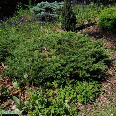 En vacker utbrett lågväxande, krypande, städsegrön buske. Sorten passar utmärkt som marktäckare som bildar en vackert grön matta. Barren är gröna med vacker purpurviolett ton på vintern. Trivs bäst i soliga slänter och stenparti.