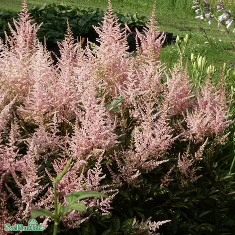 Perenn med buskigt stadigt växtsätt. Den blommar med stora plymer med fluffiga rosa blommor. Flikigt mörkgrönt bladverk. Gillas av fjärilar, bin och andra pollinatörer.