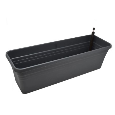 Artikelnummer: E1004127Blomlåda tillverkad av väderbeständig plast och med ett praktiskt bevattningssystem och vattennivåindikator. Passar lika bra att ha på altanen som på balkongen.
