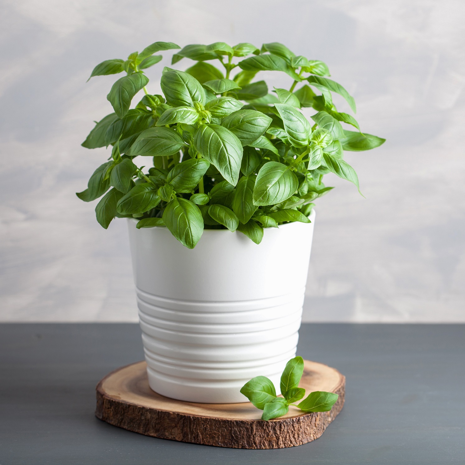 Basilika är en ettåring krydda som förhöjer många maträtter med sin goda kryddiga smak. God att använda i köket till fisk-, kött- och äggrätter. Ihop med tomat och paprika, skaldjur, sås och soppa eller genom att göra en Pesto! Växer upprätt och kompakt på rätt tunna stjälkar. Bladen är mellangröna, mjuka, lite bubbliga och mycket aromatiska.