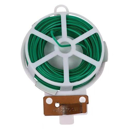 Flexibel trädgårdstråd med avbitare för att enkelt skära av bindtråden i den längd du önskar. Plastbelagd vriden tråd för allmän användning i hemmet och trädgården för bland annat uppbindning av växter