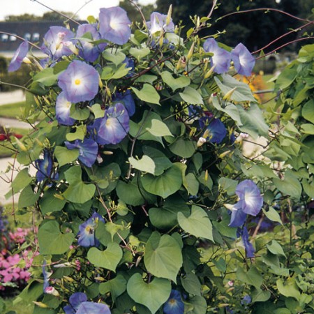 Blomman för dagen med lysande himmelsblå blommor. Varje enskild blomma är bara utslagen en dag. Passar utmärkt i stora krukor på balkong, altan och i uterum. Även fin på spaljeer i blomsterrabatten. Trivs bäst i en näringsrik, väldränerad jord i varmt och skyddat läge. Ge plantan stöd att klättra på.