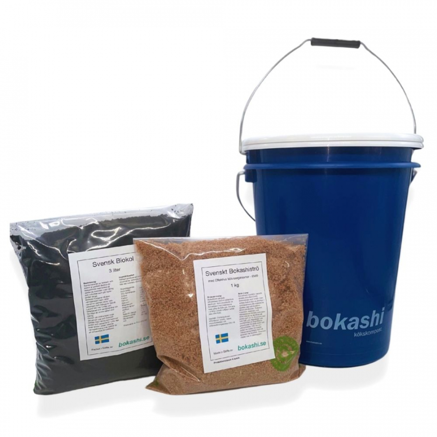 • 1 kg påse svenskt bokashiströ (räcker upp till 6 månader)