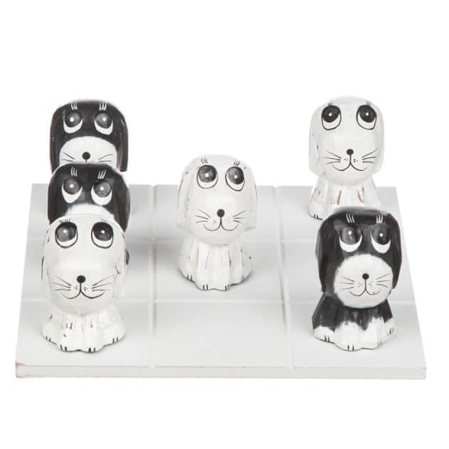 Artikelnummer: DD1525HundEtt 'Tre-i-rad' brädspel med pjäser i hundar. Storlek: 19x19cm