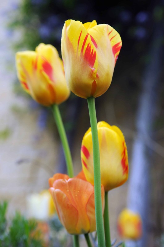 Darwinhybridtulpan 'Olympic Flame' är en unik och eldig tulpan som påminner om en eldfackla. Färgen är en gyllengul bas med röda inslag. Mycket fin sort, plantera gärna i större grupper.