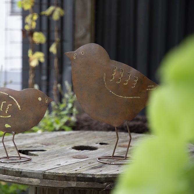 Artikelnummer: DD4619Dekorationsfågel i hamrad plåt. Fin att sätta ut i trädgården.