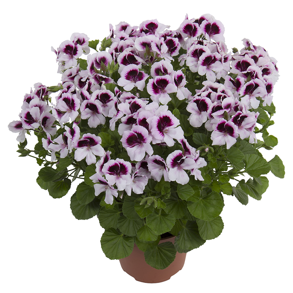 Doftpelargonen 'Mosquitaway Lizzy' är rikt blommande med vackra små blommor i rosa och vitt. Med en frisk doft av citron håller den även myggorna borta. Passar både som terassväxt och rabattväxt, medeltillväxt.