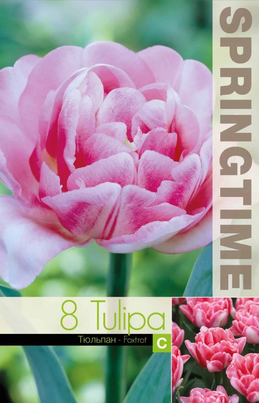 Tulpan 'Foxtrot' är en sockersöt tulpan i rosa, vit nyans. Pionlik. Blommar tidigt på säsongen.