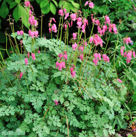 Perenn som bildar luftiga tuvor. Små, mörkrosa, hjärtformade blommor i juni-sept. Finflikigt grågrönt bladverk. Trivs i ett woodland eller som marktäckare under ett buskage i halvskuggigt läge. Även fin att plantera tillsammans med andra höstblommande perenner. Vissnar ned efter blomningen.