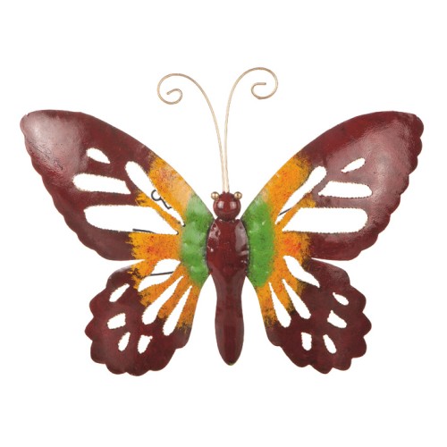 Fjäril i Hamrad Plåt 38x26cm Röd och Orange