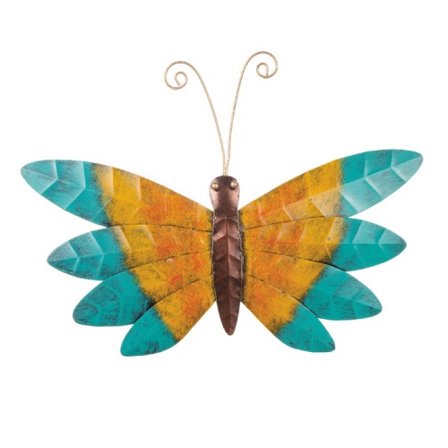 Fjäril i Hamrad Plåt 40x28cm Gul och Turkos