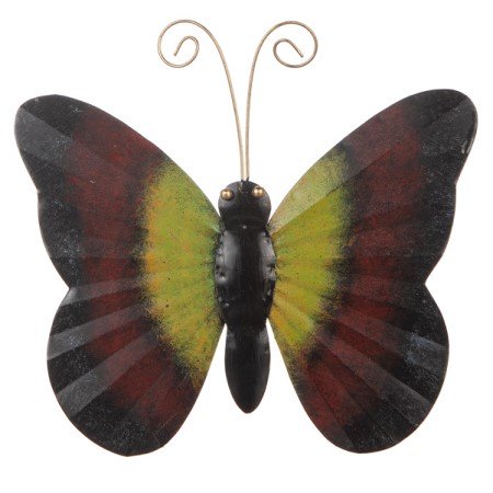Fjäril vägg i hamrad plåt Röd-Lime 41cm