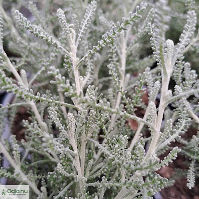 Kuddbildande halvbuske som har långsmala, flikade silvergrå blad som är vitulliga som unga. Bladen har en aromatisk, kryddig doft. Upprätt, buskigt växtsätt. Får ofta knappformade, gula blommor på sensommaren vilka älskas av fjärilar och andra pollinerande insekter. Odlas främst som säsongsväxt.