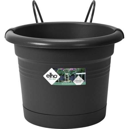 Praktisk allt-i-ett kruka till balkongen, fat och upphängningskrokar ingår.