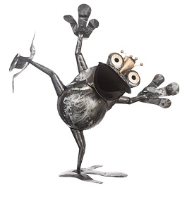 Artikelnummer: DD4134-GronSöt groda i hamrad plåt som står på 1 ben till dekoration i hem, trädgård och uteplats.
