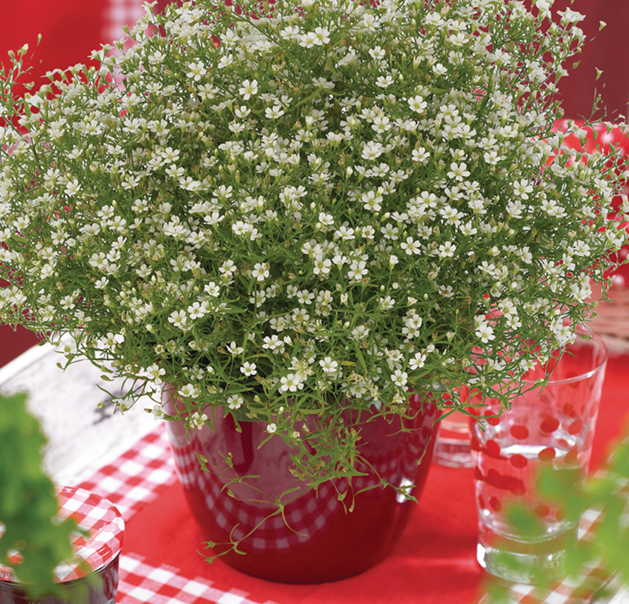 Grusnejlika kallas även murslöja. Grusnejlika är en liten sirlig och graciös växt med massor av vita små blommor. Små gröna blad. Tätt växtsätt. Väldigt fin i krukor, amplar och som kantväxt i rabatt.