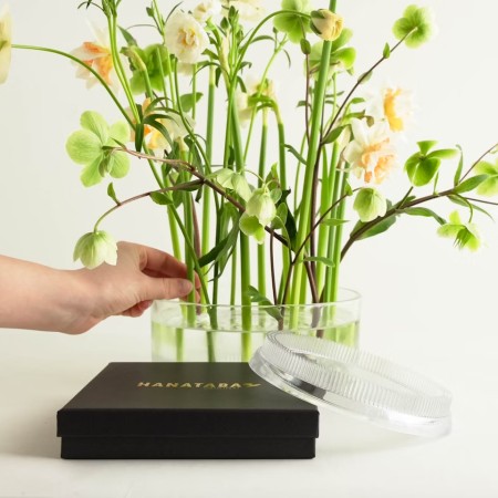 Världsunik fakir i form av en ring på 150 mm. Detta är Hanatabas egen modell och en vidareutveckling av den populära fakiren. Skapa fantastiska arrangemang på höjden med luft i mitten. Denna tungviktare på hela 1 kilo levereras i en lyxig pappersbox med magnetlås och figurskuret svart skum inuti för att ge den rätta, exklusiva känslan.