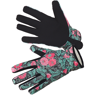 Artikelnummer: NG7344-7Elegant och smidig, sydd handske med utmärkt grepp i svart microfiber. Bekväm och med fingertoppskänsla. Handrygg av tyg i retromönster designat av Gunnel Ginsburg. Åkervinda.