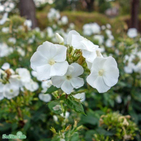 Vackra krispigt vita blommor med underbar, kryddig doft. Attraherar fjärilar och bin. Grönt bladverk och styva, upprätta stjälkar. Kan få mjöldagg om den står för torrt. Lättskött och härdig.