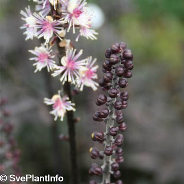 Höstsilverax 'Pink Spike' är en ståtlig perenn med mörkt purpurfärgat bladverk i kontrast till rosa blommor på höga ax. Ett vackert blickfång i rabatten, där den även förstärker skönheten hos andra perenner. Kommer igång sent på våren och planteras därför med fördel tillsammans med lökväxter och tidigblommande perenner. Blommorna har en underbar doft som sprider sig i trädgården. Fin vintersiluett. Frisk, lättodlad och långlivad.
