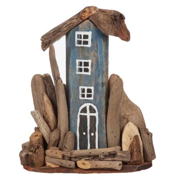 Hus i drivved Blå 15x20cm