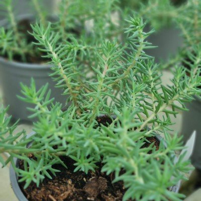 Mycket kompakt fetbladsväxt med blåsilvriga blad i täta rosetter.Den blommar med många små cremevita blommor under sommaren. En bra växt för bin, fjärilar och andra pollinatörer.