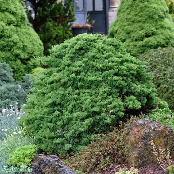 Städsegrön marktäckare som bildar en tät matta. Barren är blågröna. Sorten har ett lågt, krypande, utbrett växtsätt och passar även för plantering i stenparti och slänter. Fin att plantera i låga, breda krukor. Sorten är torktålig.