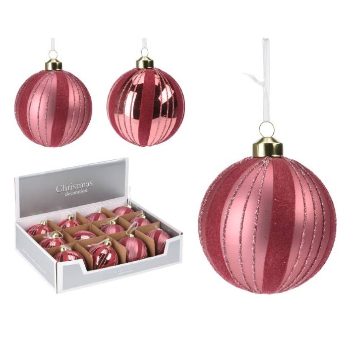 Artikelnummer: HNJ46542-12Xmas Julgranskula Glas 'Velvet Stripe' 12p