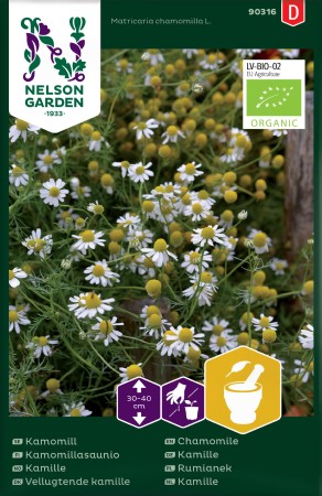 Vacker och lättodlad kamomill med prästkrageliknande blommor. Under våren och sommaren kan du så flera frön i små kluster eller tätt i rader, direkt på växtplatsen eller i små krukor för utplantering senare. Kamomill trivs bäst i gödslad jord. Skörda genom att klippa ner plantorna, de växer upp och ger skörd ännu en gång.