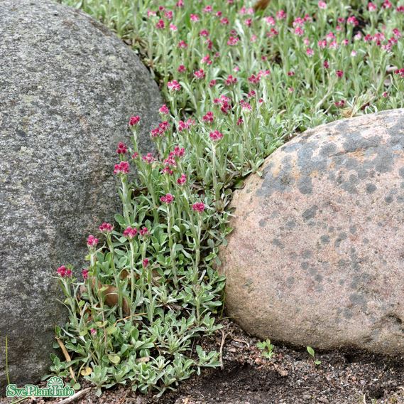 Låg, marktäckande perenn med silvrigt, hårigt bladverk och lysande rosaröda blommor i maj-juni. Ulliga knoppar. Bladverket håller sig oftast frodigt och friskt vintertid. Passar bäst på en växtplats där den får breda ut sig till en tät matta.