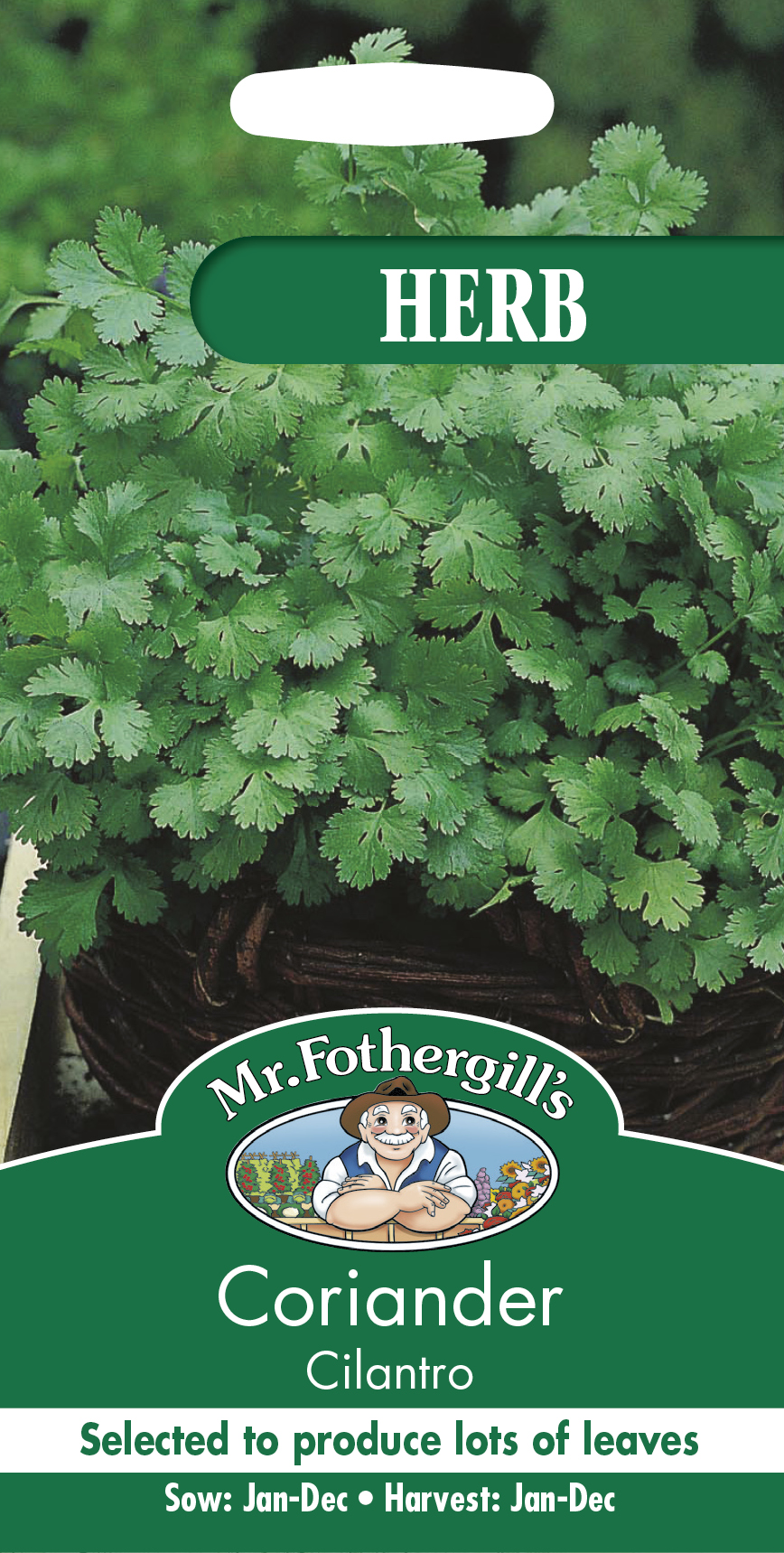 Finflikiga, frodiga och välsmakande blad som passar bra i många orientaliska och mexikanska maträtter. Cilantro har rikligt med stora blad och går inte så lätt i blom. För bäst smak använd färsk och lägg i maten samma minut som den är färdiglagad. Går bra att frysa. Kan odlas inomhus i ett ljust fönster för skörd året runt.