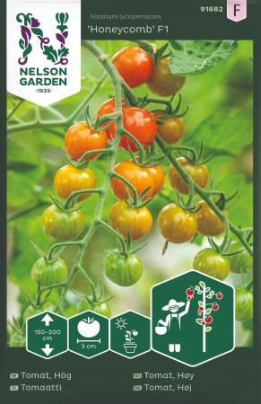 Plantan blir hög och behöver växtstöd. Tjuva plantan regelbundet, det vill säga att ta bort nya skott som bildas i plantans bladveck. Körsbärstomat 'Honeycomb' F1 påminner om 'Sungold' men har fördelen att frukten inte spricker. 'Honeycomb' F1 får dessutom sällan sjukdomar. Med sin vackra välsmakande frukt, goda odlingsegenskaper och pålitliga skörd är 'Honeycomb' F1 en favoritsort att odla bland tomatälskare.