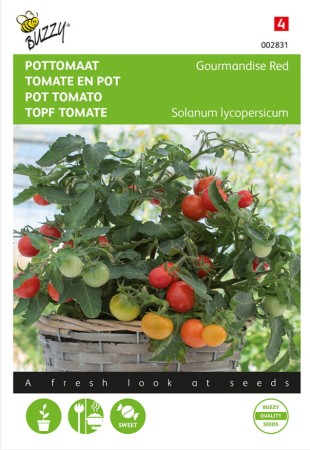 En lågväxande tomat där frukterna blir ca 2-5g. Plantan blir kompakt och buskig - perfekt för krukodling! behöver ej tjuvas.