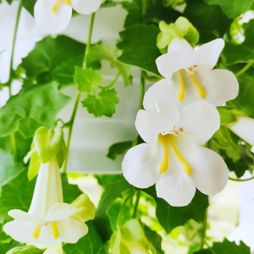 Klätterväxten lejongapsranka 'Lofos Compact White' får stora lejongapslika, klockformade blommor.. Friskt ljusgröna, tandade, hjärtformade blad. Både blad och stjälkar är mjukt ludna. Blommar från utplantering till höst. Fin på spalje och obelisker. Passar även i ampel. Sjävrensande.