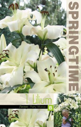 Lilja 'Pretty Woman' får upprätta, vita blommor med bronsbruna ståndare. Passar i rabatt och kruka. Underbar i bukett. Föredrar en väldränerad och näringsrik jord i ett soligt och skyddat läge. Den är härdig i stort sett hela landet om jorden är väldränerad.