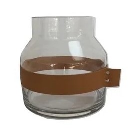 En enkel och stilren ljuslykta i glas som även kan användas som en vas. Ett fräckt läderbälte pryder lyktan.