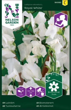 Lite större blommor, lite vitare färg, lite fler blommor, lite längre blomstjälkar. 'Royal White' är lite extra allt. Dessutom med en ljuvlig doft. Luktärter behöver växtstöd, och rankorna kan bli upp till två meter långa där de trivs. Tack vare sina långa och kraftiga blomstjälkar är 'Royal White' en utmärkt snittblomma. Plantan kommer att producera fler blommor och få en längre blomningstid när du plockar blommorna regelbundet.