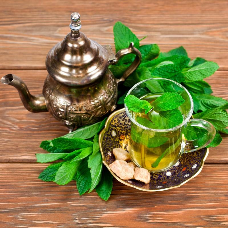 Marockansk mynta är den mest klassiska myntan att torka för te. Denna mynta har vackert gröna blad och vita blommor. Blommorna älskas av fjärilar och bin. Snabbväxande. Smaken blir som bäst om bladen plockas innan blomning. God i te, desserter, och drinkar. Eller varför inte göra ett myntasocker som kan användas till bakverk eller teet?