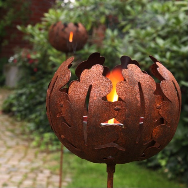 Artikelnummer: EG1808En mycket dekorativ och vacker marschallhållare utformad med ekblad, i rostig plåt.
