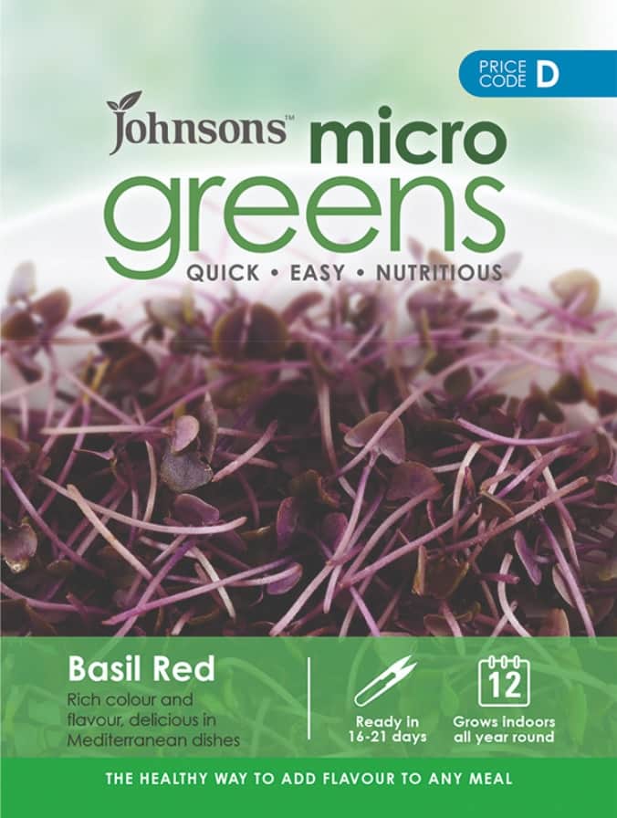 Lättodlad, färgstark men söt basilika. Utsökt i medelhavsrätter. Passar i rätter som sallader, soppor och såser. Särskilt bra med tomater. Basilikans blad innehåller mycket E-vitamin som skyddar mot fria radikaler. Skördas när de första bladen kommit upp eller när plantorna nått ca. 5 cm.