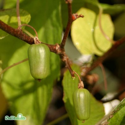 Minikiwi kallas även för Krusbärskiwi. Sorten 'Issai' är en kraftigt växande lian. Växer flera meter per säsong och behöver stöd. Gräddvita doftande blommor i juni. Får vindruvsstora bär, släta och gröna, som är mycket goda. Mognar i slutet av september. Fin gul höstfärg. Självfertil sort, men ger bättre skörd om den planteras med t ex. sorten 'Tage'.