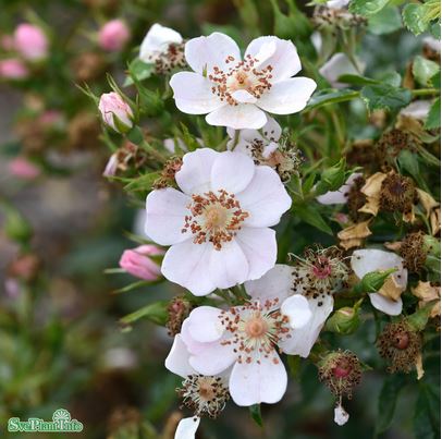 Modern buskros med marktäckande växtsätt som får små, enkla blekt rosa blommor i klasar. Mild doft. *Kontinuerlig blomning. Mörkgrönt, glänsande bladverk. Gillas av pollinerande insekter. Kallas också 'Butterflies' och 'Telluride'.
