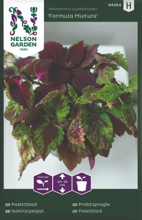 Denna mix ger plantor med extra stora blad och en mängd färgvariationer. En solig placering ger bladen en mer intensiv färg. Dekorativ krukväxt. Toppa regelbundet så blir plantan buskig.