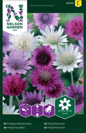 Ifall du tycker om eternellblommor är pappersblomma en av de bästa. Blomman är mycket näpen med dubbla kronblad och en papperslik textur. Blandningen får rosa, lila och vita blommor. Plantan har en upprätt och förgrenad stam. Bladen är lite duniga och blommorna sitter på stjälkar som vajar mjukt i vinden eftersom de är späda men sega.