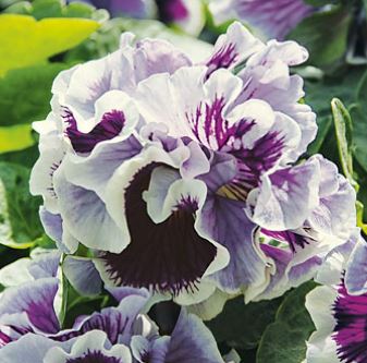Pensée 'Purple White Rim' är en fullkomligt bedårande pensée med stora och mycket vågiga blommor i mörkviolett och vitt. Den har ett upprätt och kompakt växtsätt, blommar länge och har mycket doft. Fin i kruka, rabatt, stenparti, woodland, som kantväxt.